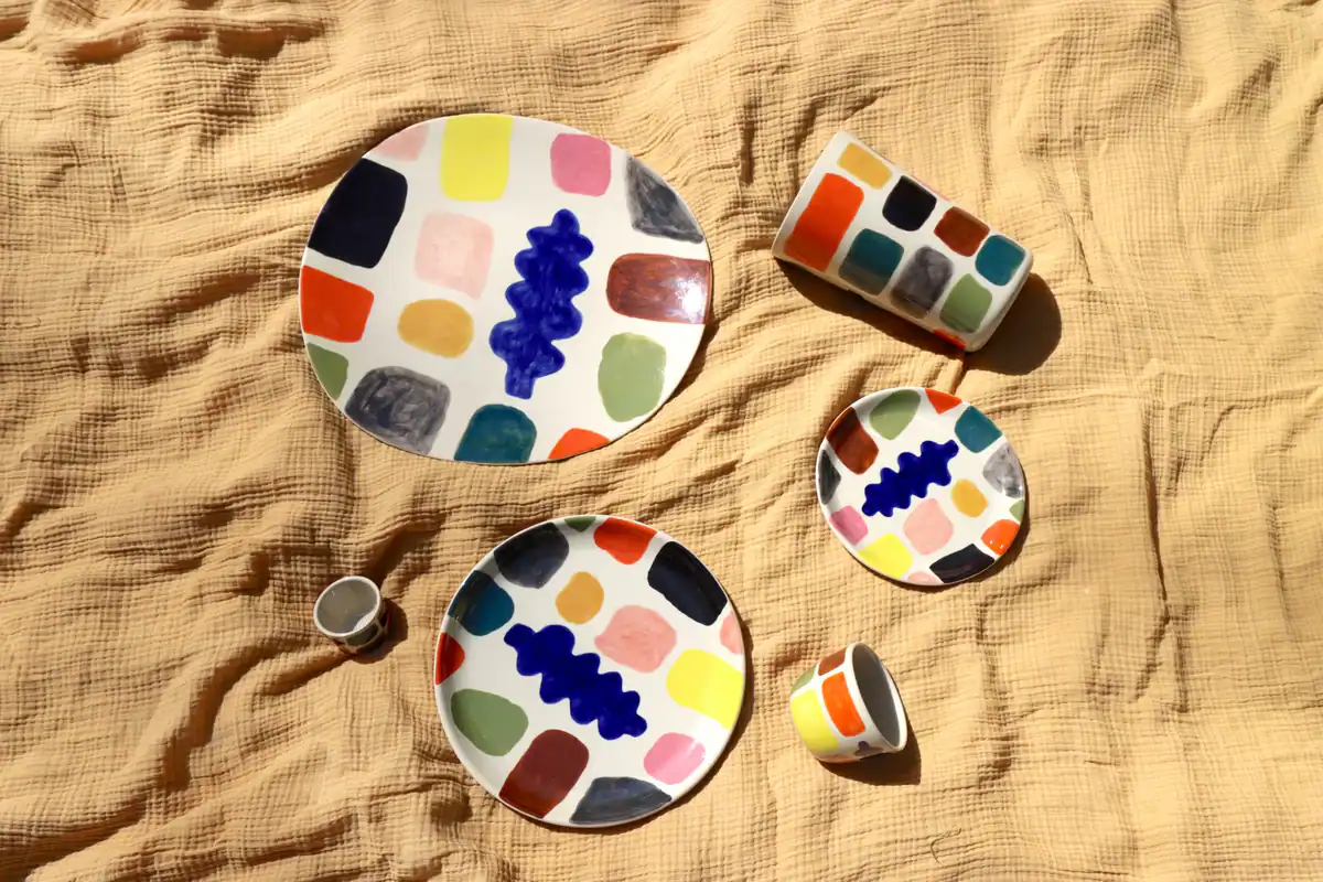 The new Mottle Ceramics range by Donna Wilson is the latest addition to our Stoneware collection and has a colourful abstract design, inspired by an artist’s painting palette.