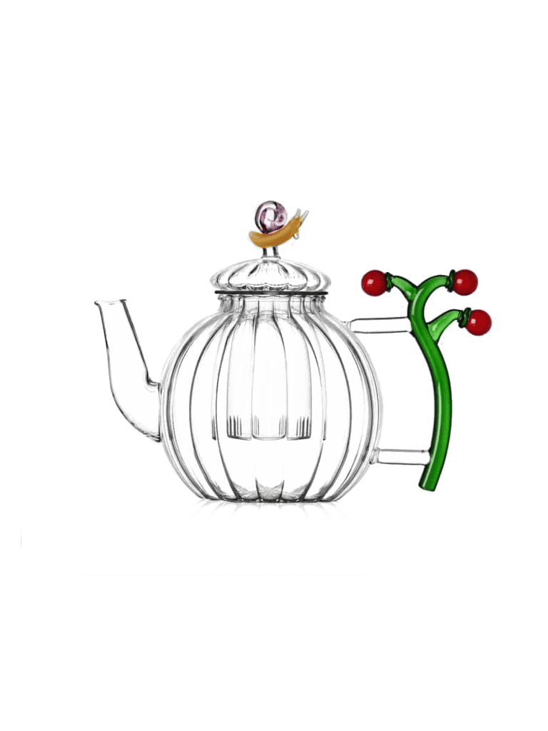 The Optic Tomatoes and Snail Teapot is a charming piece from Ichendorf Milano’s “Vegetables” collection, designed by Alessandra Baldereschi. This handcrafted borosilicate glass teapot features a unique design inspired by garden elements, incorporating optic textures, tomato motifs, and a whimsical snail figure on the lid. Its playful yet elegant aesthetic brings a touch of nature to your tea experience, making it both a functional item and a delightful conversation piece.